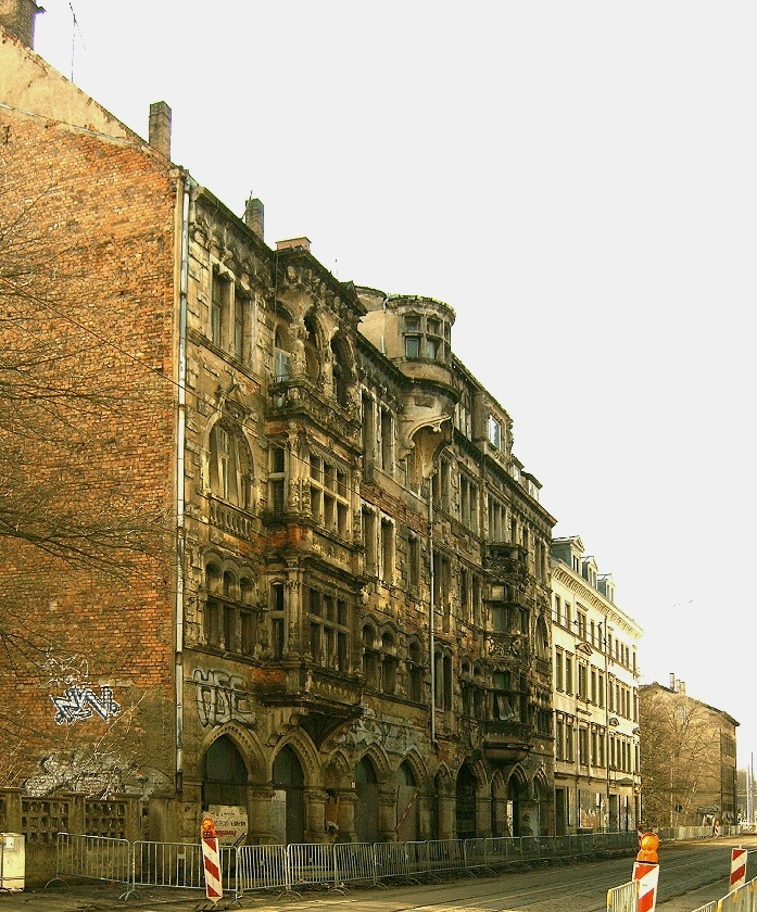 Die Bilder lassen einen Hauch einstiger Pracht erahnen. Manch älterer Leipziger wird sich an die Feuerlöscher im Erdgeschoss erinnern. Im April 2006 erfolgte der Abriss.
